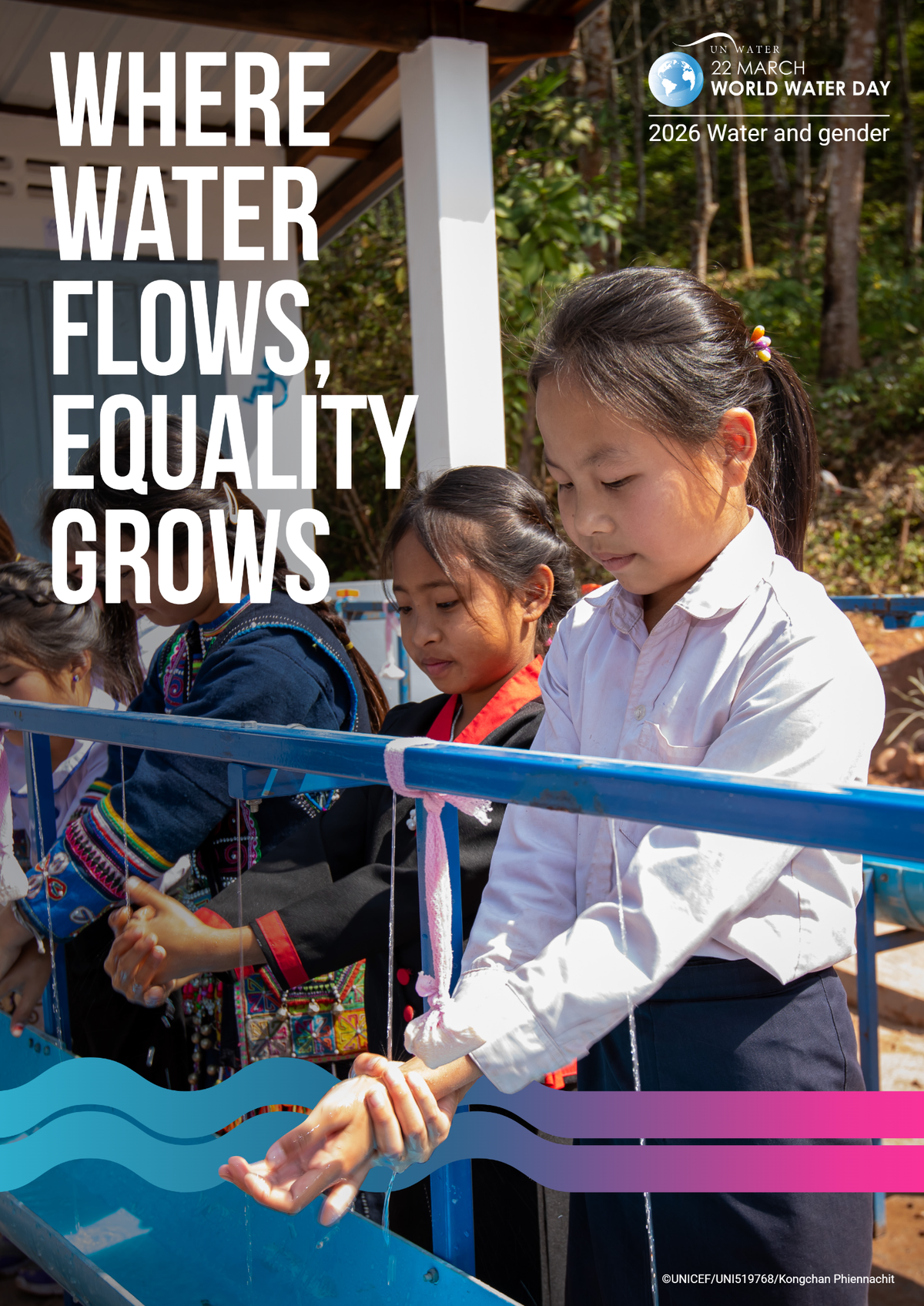 »Kjer teče voda, raste enakost« je letošnji slogan Svetovnega dneva voda 2026. Poudarja dostop do varne pitne vode in sanitarij kot temeljno človekovo pravico ter ključen pogoj za doseganje enakosti spolov. Globalna vodna kriza ne prizadene vseh enakoPomanjkanje dostopa do varne pitne vode in sanitarij povečuje neenakosti, pri čemer največje breme nosijo ženske in dekleta. Čas je, da rešitve na področju vode postavijo ženske in dekleta v središče. Ključna dejstva